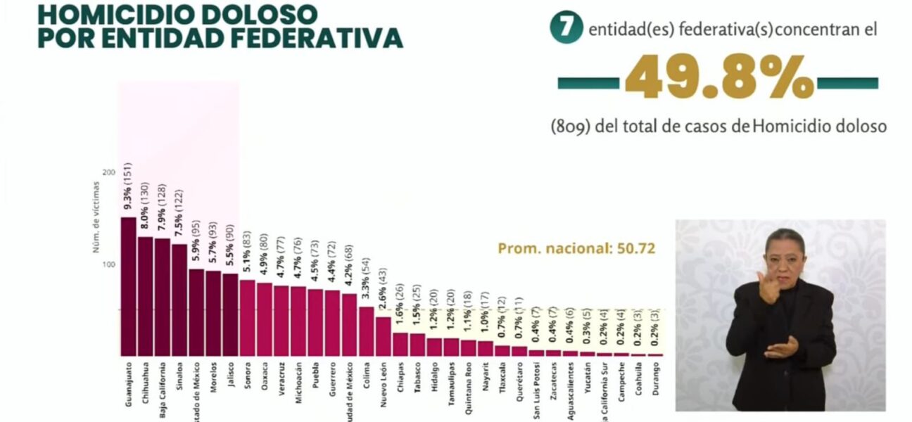 • La entidad potosina se mantiene por debajo del 1 por ciento del total nacional en el número de homicidios dolosos. San Luis Potosí registra una reducción del 53 por.