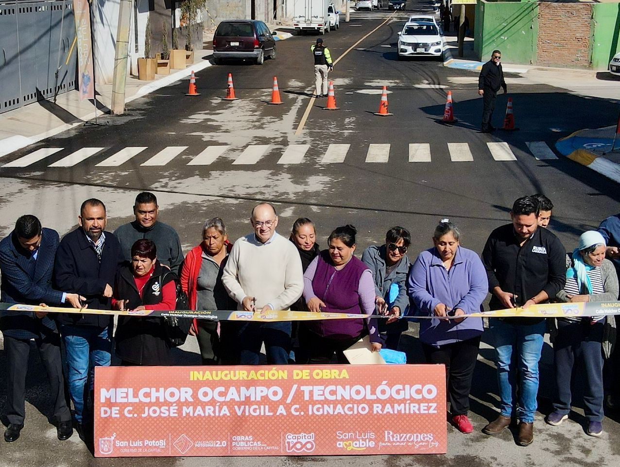 – El Presidente Municipal Enrique Galindo entregó las calles Melchor Ocampo y Tecnológico, en la colonia Plan Ponciano Arriaga, al norte de la ciudad, vialidades que anteriormente eran de tierra y carecían de servicios básicos, y que hoy cuentan con pavimento, alumbrado, banquetas accesibles y redes nuevas de agua y drenaje, como parte de la transformación urbana que impulsa el Gobierno de la Capital.