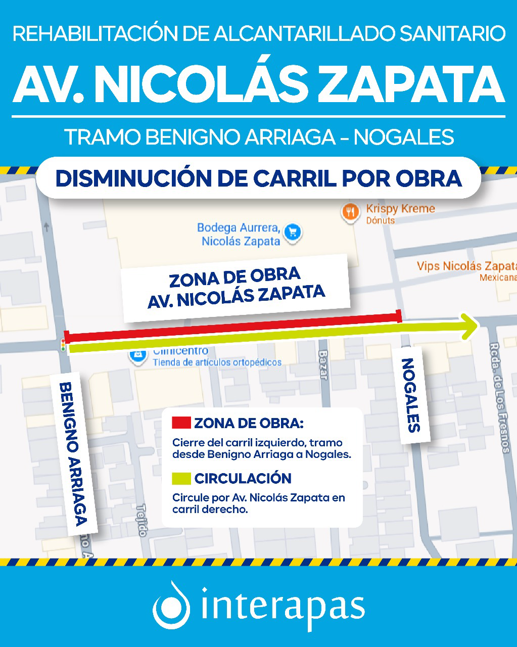 • Debido a los trabajos habrá disminución de carril en la vialidad por lo que sea pide tomar precauciones.