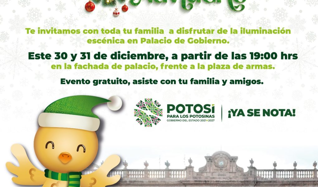 • Los próximos 30 y 31 de diciembre se proyectará video Mapping en el Palacio de Gobierno Como parte de las acciones del Gobierno del cambio que encabeza Ricardo Gallardo Cardona,