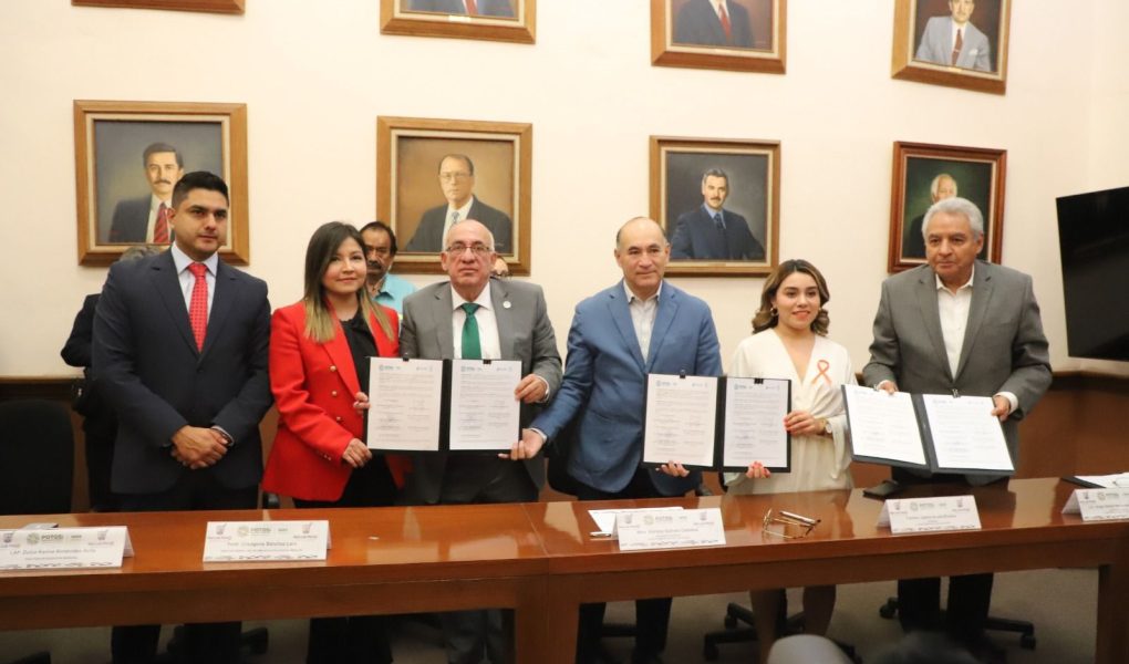 En la firma de dos convenios de colaboración entre el Ayuntamiento de San Luis Potosí y el Sistema Educativo Estatal Regular, para la instalación, operación e incorporación de las Bibliotecas