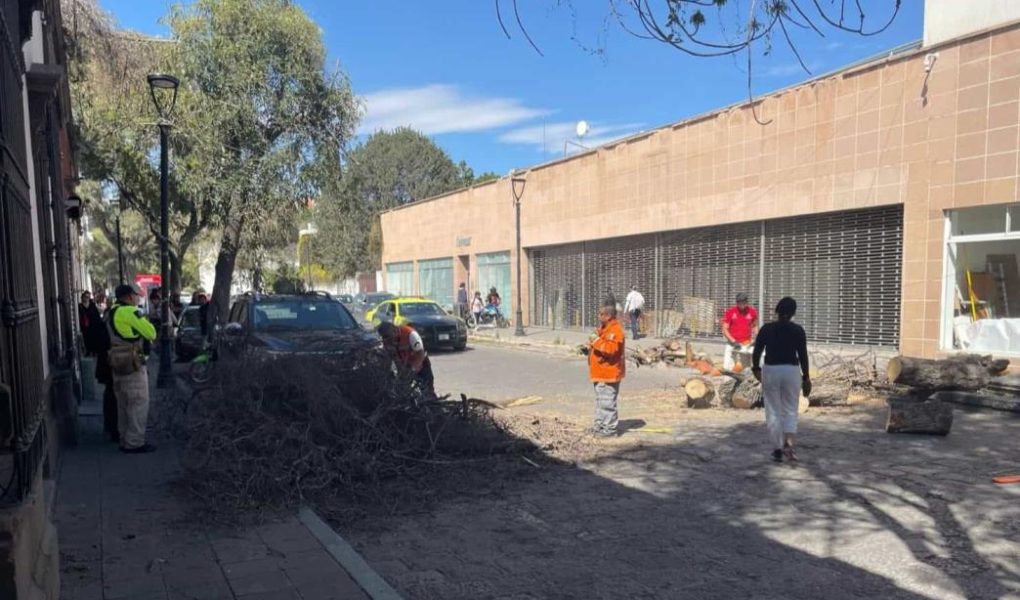 En la mañana del martes 4 de marzo, un árbol cayó sobre un vehículo en la calle Mariano Arista, cerca de la intersección con Uresti, debido a los fuertes vientos