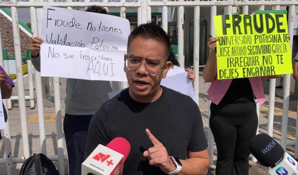 Familiares y alumnos de la Universidad Potosina se manifestaron en las afueras de la Secretaría de Educación del Gobierno del Estado (SEGE) para expresar su inconformidad y la falta de