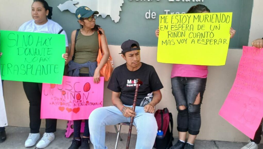 Un grupo de pacientes renales se manifestó pacíficamente en el Centro Estatal de Trasplantes (CENTRA) en San Luis Potosí para exigir a las autoridades estatales y federales la reactivación de