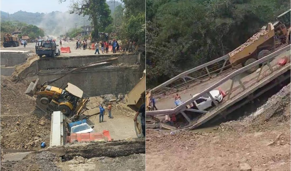 Un puente vehicular se desplomó durante los trabajos de ampliación de la carretera Tamazunchale-Matlapa en San Luis Potosí, la tarde de este miércoles. El incidente tuvo lugar cerca de la