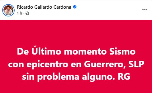 En el caso de San Luis Potosí, el gobernador Ricardo Gallardo Cardona aclaró que no se detectó ningún tipo de afectación ni se tuvo registro de movimiento sísmico en el estado, por lo que la población potosina no corrió ningún riesgo derivado de este evento.