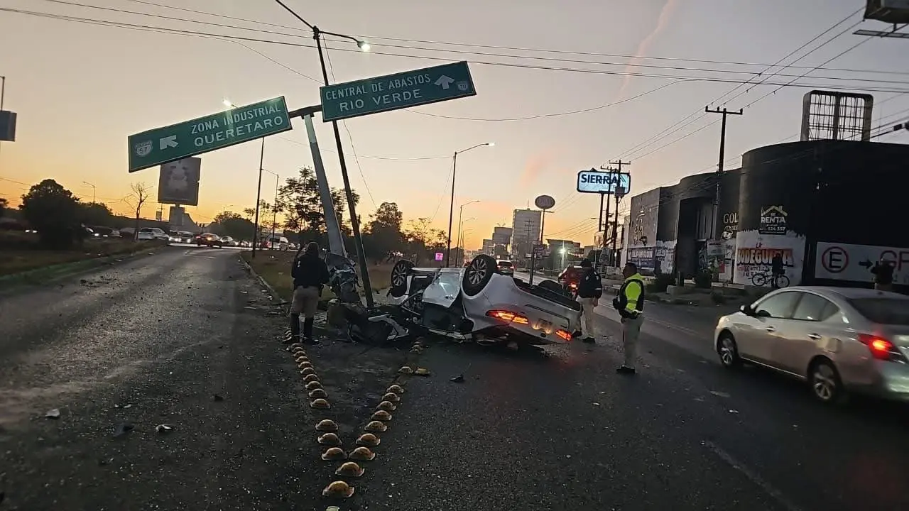 La circulación en la lateral de la Carretera 57 se vio seriamente afectada tras un accidente ocurrido frente a Sam’s Club, a la altura de Avenida Topacio, donde un vehículo terminó volcado y fue necesaria la intervención de cuerpos de emergencia durante varios minutos.