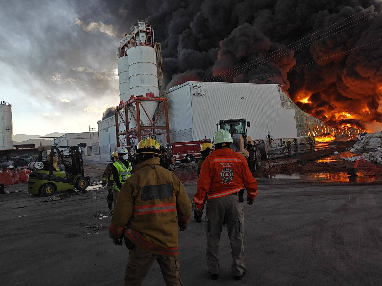 En el operativo participan elementos de Protección Civil Estatal, Guardia Civil Estatal y Municipal, Bomberos Metropolitanos, brigadas internas de la empresa, así como unidades de emergencia de Protección Civil Municipal y del municipio de Villa de Pozos.