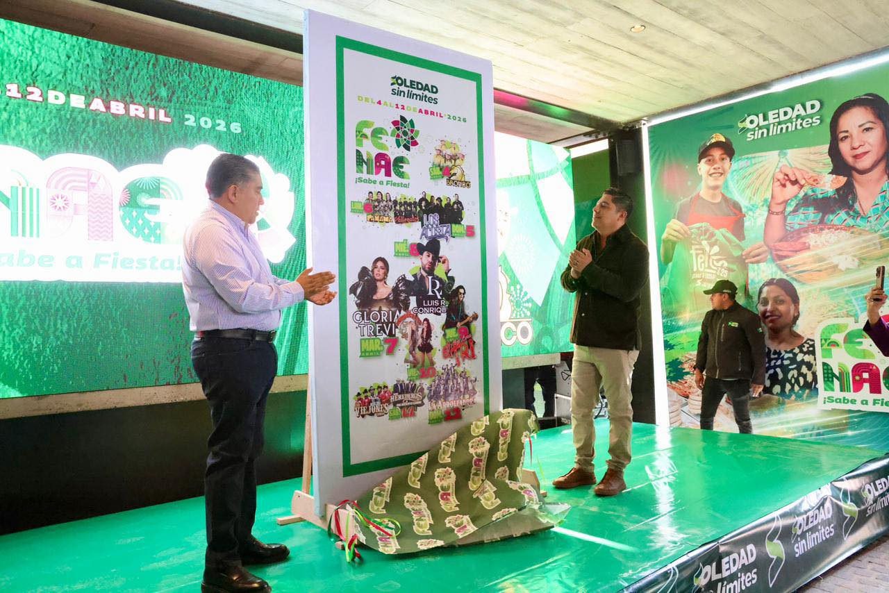 El Ayuntamiento de Soledad de Graciano Sánchez presentó la cartelera oficial de la edición 2026 de la Feria Nacional de la Enchilada (Fenae), uno de los eventos más representativos del municipio, que se llevará a cabo del 4 al 12 de abril con una agenda que incluirá conciertos, actividades deportivas, culturales y gastronómicas.