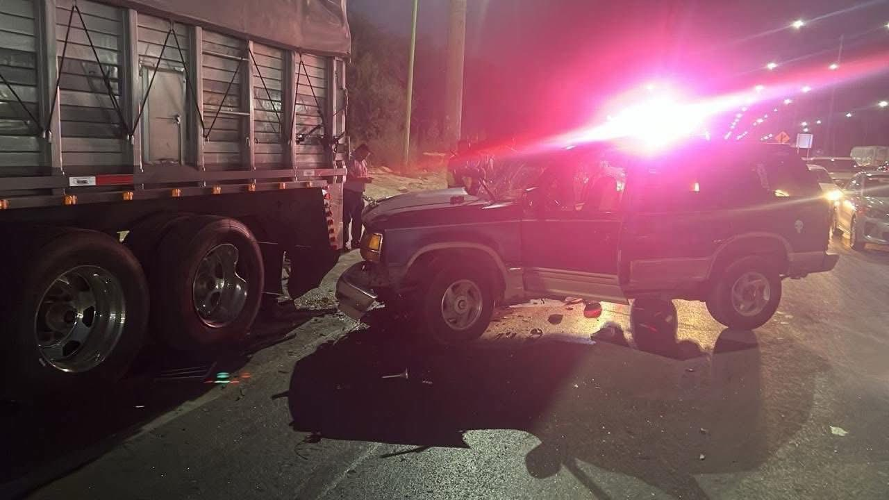 Una mujer resultó lesionada este domingo por la tarde luego de que la camioneta que conducía se estrellara contra la parte trasera de un camión tipo Torton en la carretera a Matehuala, a la altura del kilómetro 11, justo frente a la gasolinera conocida como “del avioncito”, con dirección de norte a sur.