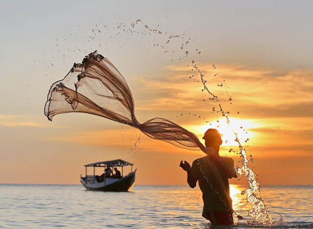 Pescadores en la playa Bira, en Indonesia.