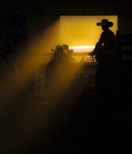 Vaqueros en un rodeo.