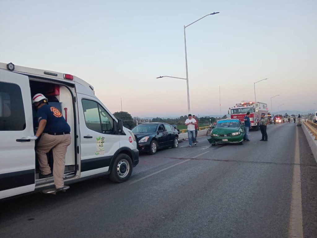 En otro punto, sobre el puente vehicular de Ciudad Fernández, un taxi impactó por alcance a un automóvil particular. El choque dejó tres personas golpeadas, una de las cuales tuvo que ser trasladada a un hospital para recibir atención médica.